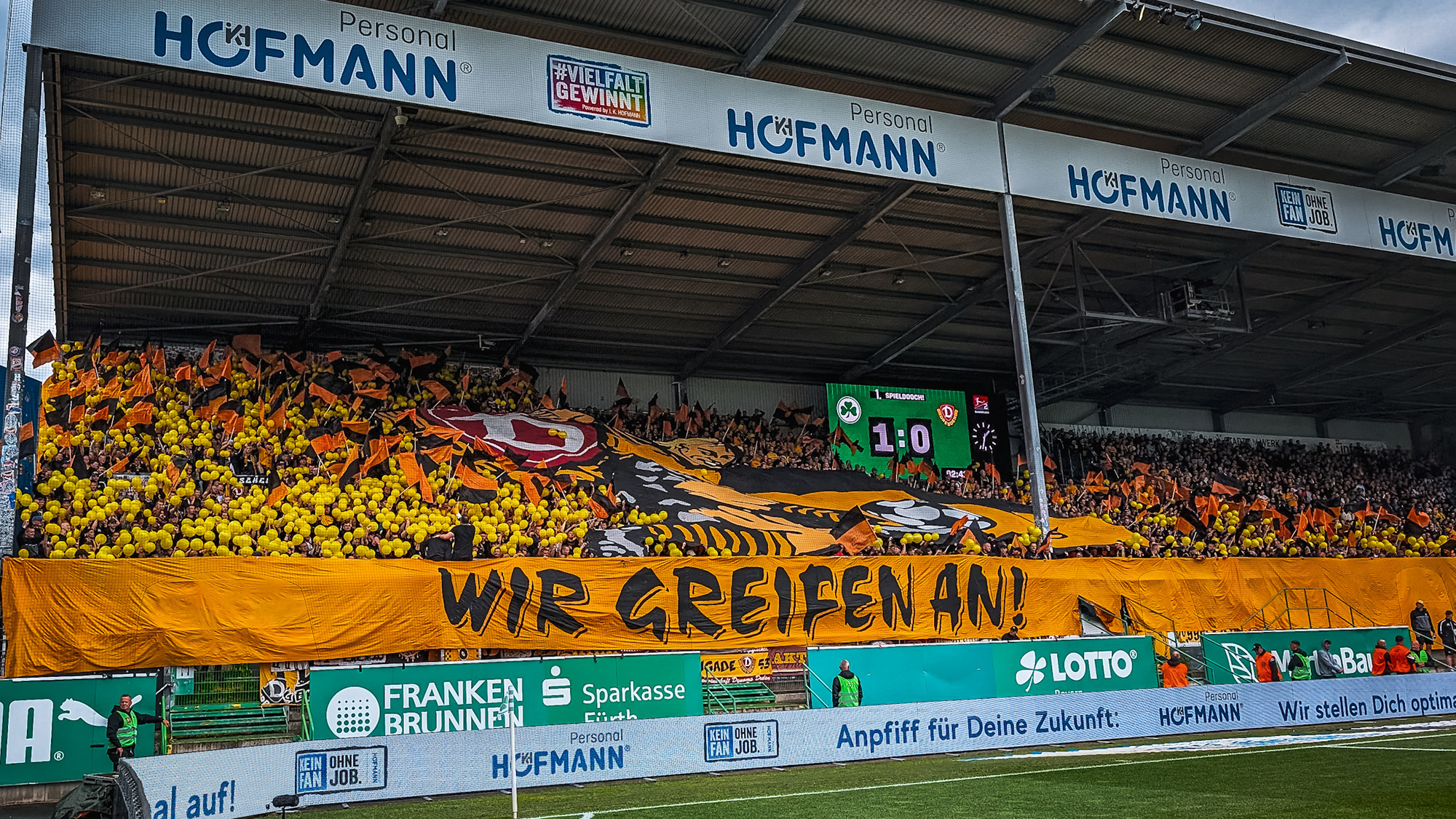 Und leider geb ich nur eine 2 fürs Verhalten der Dynamo Fans, da Wir einen Vorfall beobachtet haben als ein sogenannte " Fan" einen Schal von einem Greuther Mädchen ziehen wollte .SCHÄM DICH DU ARSCH !!!!